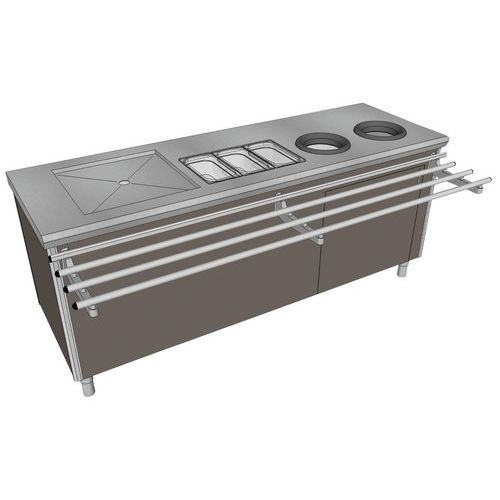 - Dessus en acier inoxydable épaisseur 15/10e de mm.
