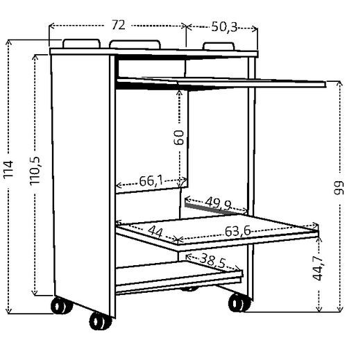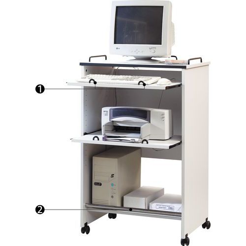 | Intitulé du produit | Meuble informatique mobile, Plateau coloris: Gris, Nb de tablettes: 4, Largeur hors tout: 72 cm |