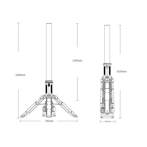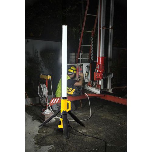 Géant avec 156 cm de hauteur, 85 cm de base, le luminaire LED EXCALIBUR STAK se démarque définitivement sur le chantier , il est utilisé comme lumière principale pour éclairer une pièce ou un espace extérieur.