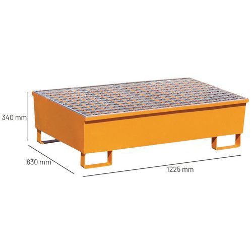 | Intitulé du produit | Bac de rétention acier conique 220 L, Capacité (nb de fûts): 2, Caillebotis: oui |