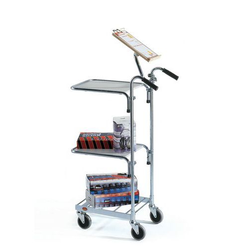 | Intitulé du produit | Mini-chariot, Force: 35 kg, Hauteur hors tout: 1060 mm, Largeur hors tout: 360 mm, Longueur hors tout: 650 mm |