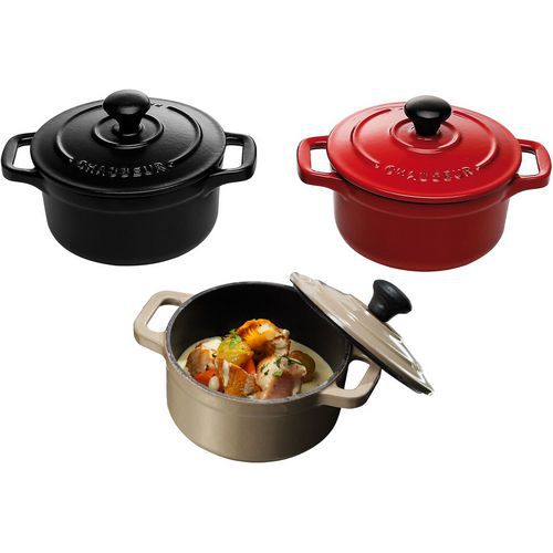 | Intitulé du produit | Mini cocotte ronde avec couvercle Le Chasseur, Diamètre Ø: 100 mm, Matériau: Fonte, Forme: Rond |