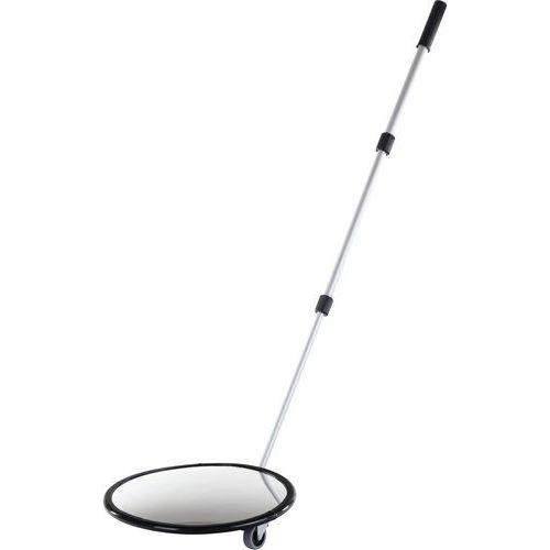 Miroir d'inspection contrôle des véhicules dans les zones d'accès ou l'inspection des machines et des véhicules. Disponible avec ou sans éclairage et avec ou sans roues. Équipé d'un bras télescopique en aluminium de 40 à 110 cm pour faciliter la fouille. L'équipement de lumière LED et/ou de roues facilite le contrôle par les policiers, gendarmes ou toute entreprise de surveillance. Roues dotées d'un revêtement en polyuréthane souple et d'un roulement à billes pour une utilisation facilitée. Certificat du TÜV. Fabriqué en UE