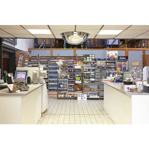 - Ce miroir demi-sphère permet le contrôle de la circulation, la surveillance de magasin, entrepôt, usine, machine.