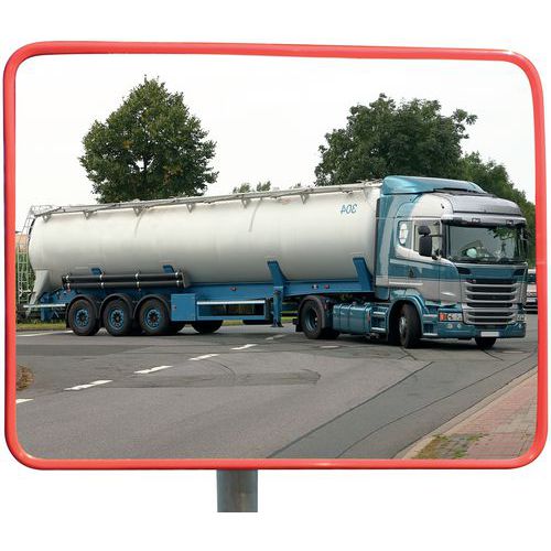 Miroir de sécurité industriel permettant de renforcer la sécurité dans les zones industrielles, etc. Résistant et robuste: testé à des vents violents force 12 (ouragan supérieur à 117 km/h). Fixation à quatre points sur poteau ou au mur avec rotule pour un meilleur réglage. Cadre rouge pour attirer l'attention. Miroir acrylique : plus résistant que le verre. Excellent retour d'image sans déformation. Facile à installer.