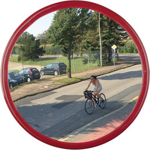 Miroir de surveillance extérieur cadre rouge, Distance d'observation: 22 m, Forme: Rond Miroir de surveillance extérieur cadre rouge, Distance d'observation: 22 m, Forme: Rond