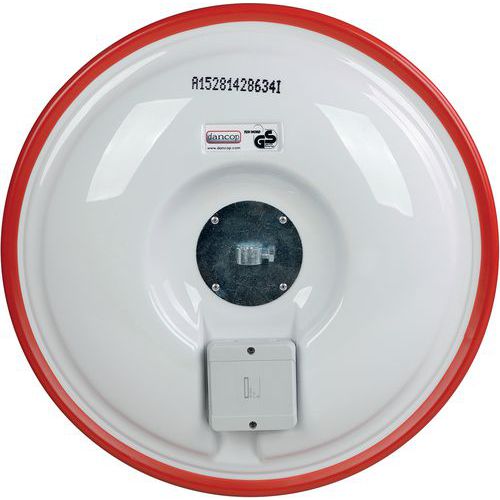 Miroir de sécurité industriel permettant de renforcer la sécurité dans les zones industrielles, etc. Résistant et robuste: testé à des vents violents force 12 (ouragan supérieur à 117 km/h). Fixation à quatre points sur poteau ou au mur avec rotule pour un meilleur réglage. Cadre rouge pour attirer l'attention. Miroir acrylique : plus résistant que le verre. Excellent retour d'image sans déformation. Facile à installer.