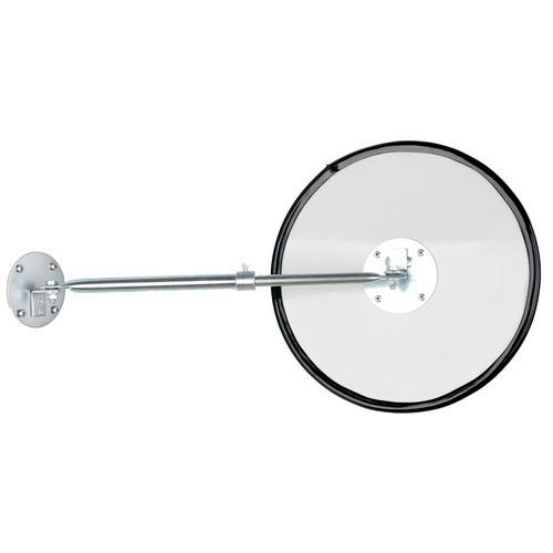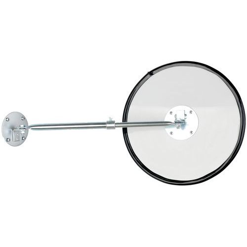 Miroir de surveillance universel idéal dans les zones industrielle, les sorties de garage, etc. En acrylique, plus résistant aux chocs que le verre. Excellent retour d'image sans déformation par métallisation appliqué à l'arrière. Résistant aux chocs selon la norme DIN ISO 179-1. Certificat du TÜV.