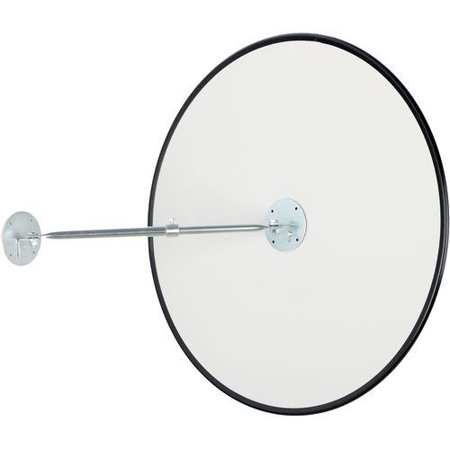 Miroir de surveillance universel idéal dans les zones industrielle, les sorties de garage, etc. En acrylique, plus résistant aux chocs que le verre. Excellent retour d'image sans déformation par métallisation appliqué à l'arrière. Résistant aux chocs selon la norme DIN ISO 179-1. Certificat du TÜV. Fabriqué en UE
