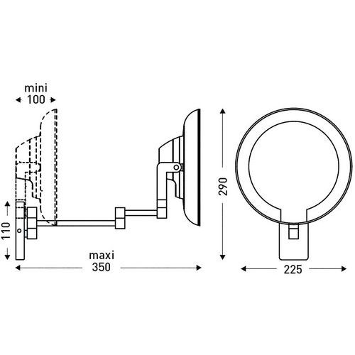 | Intitulé du produit | Miroir lumineux chromé bras tubulaire Cosmos, Largeur hors tout: 255 mm, Hauteur hors tout: 290 mm |
