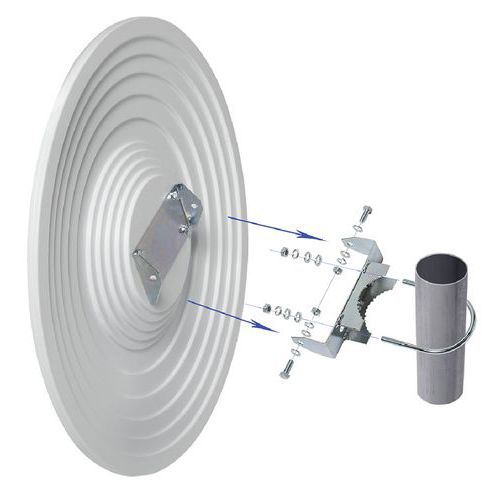 - Fixation possible sur poteaux ronds de 60 à 76 mm de section ou murale.