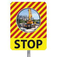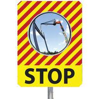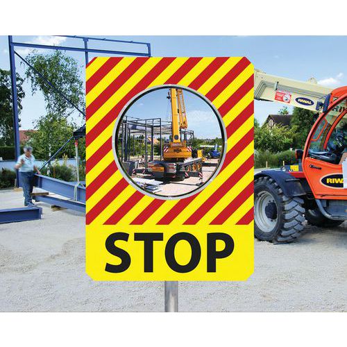 Miroir pour chantier temporaire avec message de sécurité, Distance d'observation: 12 m, Forme: Rond