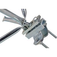Fixation à quatre points pour poteau ou sur mur avec rotule, plus solide qu'une fixation classique.