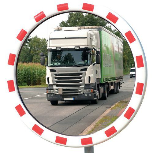Miroir routier améliore la sécurité et réduit les dangers dans les zones industriels. Grâce à la métallisation de l'optique, il offre une excellente reproduction d'image sans distorsion. Robuste et résistant: testé à des vents violents force 12 (ouragan supérieur à 117 km/h). Fixation rotule à quatre points pour un réglage précis sur poteau ou au mur. Cadre rouge/ blanc pour attirer l'attention. Durée de vie prolongée grâce à la connexion étanche du miroir avec le cadre. . Fabriqué en UE