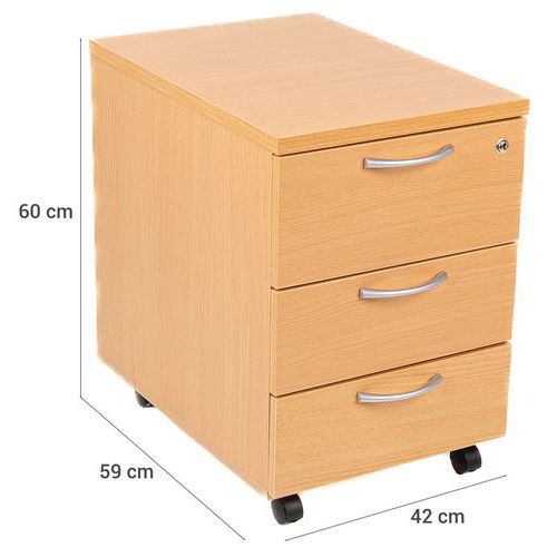| Intitulé du produit | Caisson mobile, Matériau: Mélaminé, Hauteur hors tout: 60 cm, Nb de tiroirs: 3, Largeur hors tout: 42 cm |
