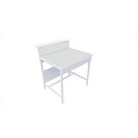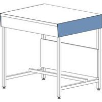 Modèle avec dosseret à tablette pour accessoires divers. Plateau stratifié 1,2 mm postformé sur chant de façade. Paillasse de laboratoire à revêtement étanche.