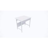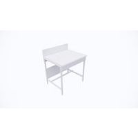 Piètement en forme de H réalisé en tube 30x30 mm. Revêtement en peinture époxy blanche. Piètement équipé de pieds vérins de réglage en polyamide renforcé. Ossature composée d'un piètement en hauteur, un bandeau frontal et un panneau cache-fluides en mélaminé hydrofuge. Plan de travail en mélaminé avec support en bois en aggloméré hydrofuge classe E1. Rive anti-choc en ABS arrondi. Finition en quartz anti-rayures. Dosseret simple réalisé en mélaminé blanc lisse plaqué sur le pourtour par une rive PVC gris clair. Dosseret conçu pour recevoir des prises de courant et/ou de la robinetterie.