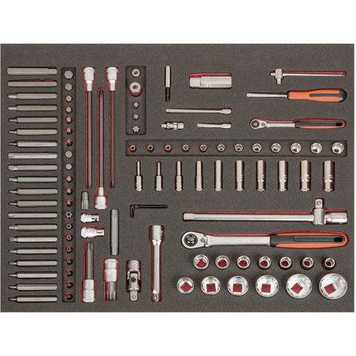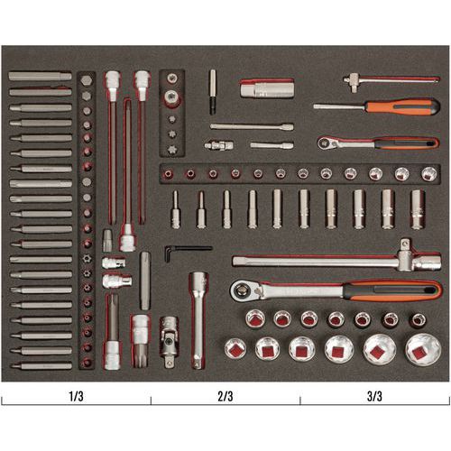 | Intitulé du produit | Module 3/3 jeu d’embouts clé à cliquet et douilles automobiles, Nb de pièces: 105, Poids du produit: 5.76 g |