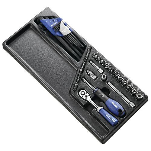 | Intitulé du produit | Module de douilles et accessoires 1/4 métriques, Réf. Fabricant: E194680, Nb de pièces: 45 |
