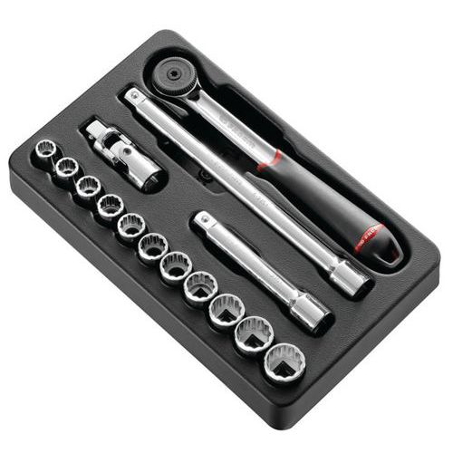 | Intitulé du produit | Module douilles 1/2 12 pans en pouces, Réf. Fabricant: MOD.S161-112U, Nb de pièces: 16, Poids: 2000 g |