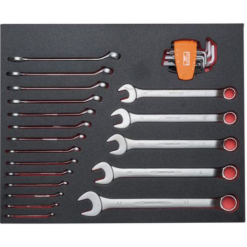 | Intitulé du produit | Module jeu clés mixtes contre coudées 28 pièces, Nb de pièces: 28, Poids du produit: 3.35 g |