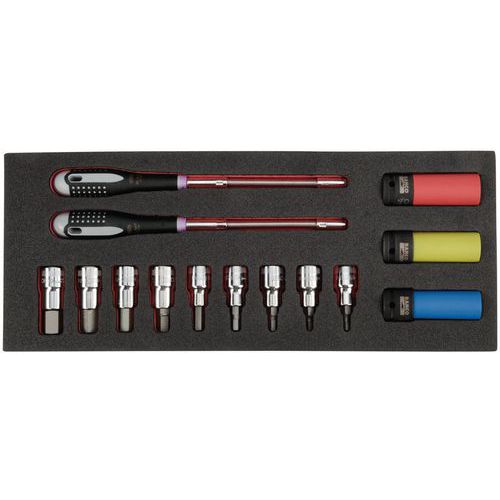 | Intitulé du produit | Module jeu douilles tournevis/douilles à chocs 1/2 1/3, Nb de pièces: 20, Poids: 2.01 g |