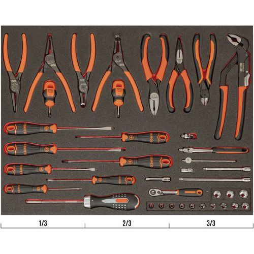 | Intitulé du produit | Module jeu pinces/tournevis/douilles 1/4 40 pièces - Bahco, Nb de pièces: 40, Poids du produit: 3.14 g |