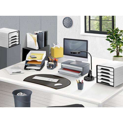 2 grands tiroirs pour ranger vos fournitures de bureau (stylos, calculatrice, bloc note A5,…).
