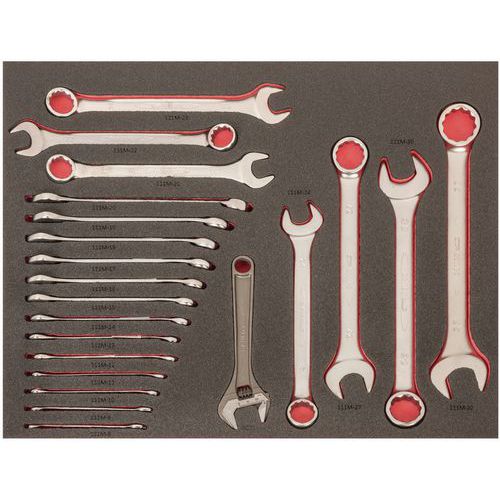 | Intitulé du produit | Module mousse 3/3 clés mixtes et clés à molette 21 pièces, Nb de pièces: 21, Hauteur hors tout: 35 mm |