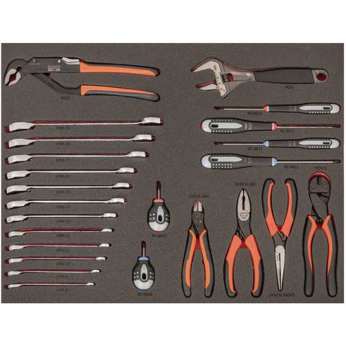 | Intitulé du produit | Module mousse 3/3 tournevis ERGO clés et pinces 24 pièces, Nb de pièces: 24, Hauteur hors tout: 40 mm |