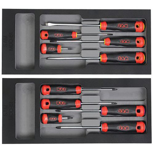 | Intitulé du produit | Module mousse de 10 tournevis bi-matiere, Réf. Fabricant: T-PPZJ10MM, Nb de pièces: 10 |