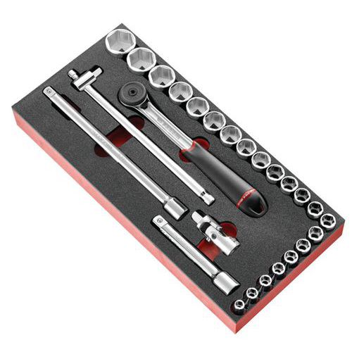 | Intitulé du produit | Module mousse douilles 1/2 6 pans métriques, Réf. Fabricant: MODM.SL161-36, Nb de pièces: 24 |
