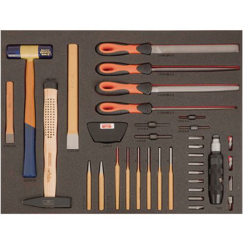 | Intitulé du produit | Module outils frappe & limes 40 pièces, Nb de pièces: 40, Hauteur hors tout: 40 mm, Largeur hors tout: 445 mm |
