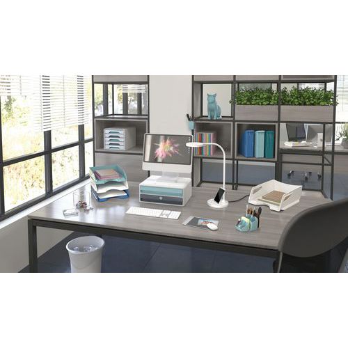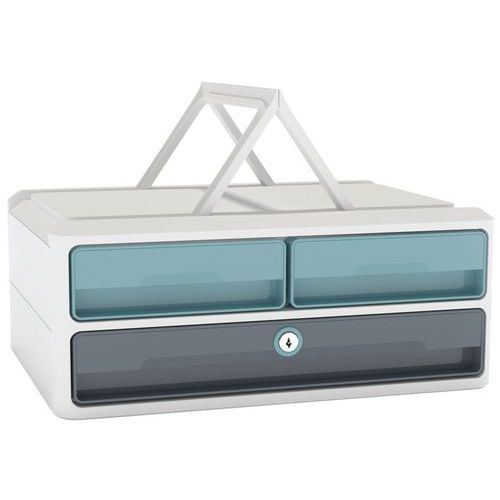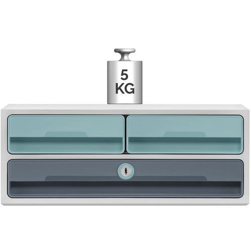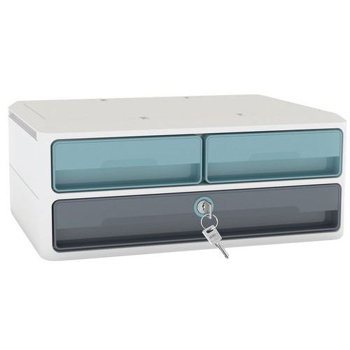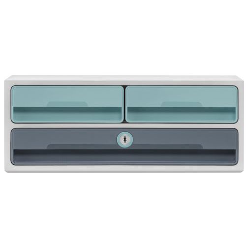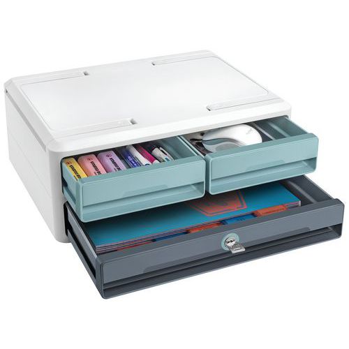 Module MoovUp comprenant 2 demi-tiroirs et 1 grand tiroir pour ranger aussi bien des fournitures de bureau que des documents ou tablette.