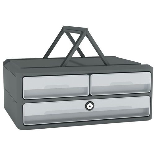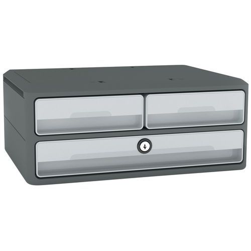 Module MoovUp comprenant 2 demi-tiroirs et 1 grand tiroir pour ranger aussi bien des fournitures de bureau que des documents ou tablette.