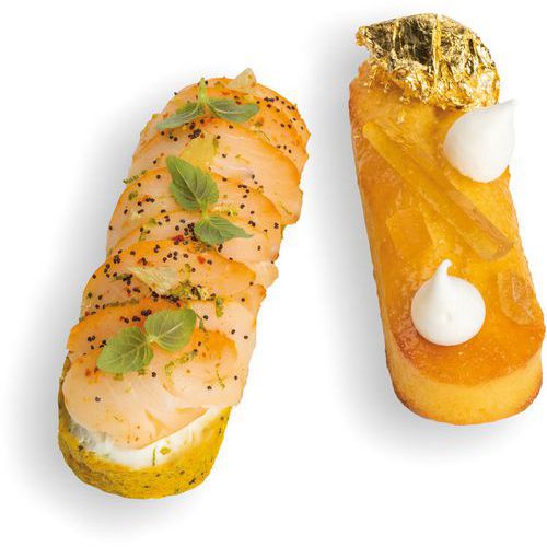 | Intitulé du produit | Moule tartelette oblong pour fonceuse à pâte, Hauteur: 2 cm, Longueur: 130 mm, Largeur: 40 mm, Coloris: Noir |