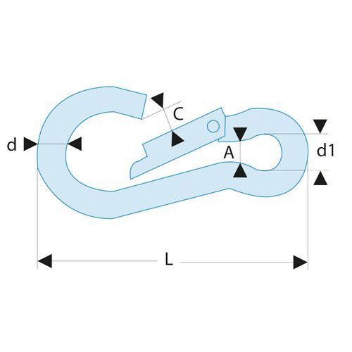 - Mousqueton en inox 316 : très grande résistance à la corrosion.