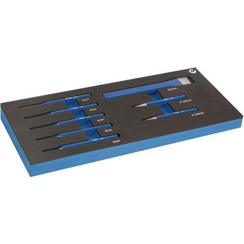 | Intitulé du produit | Mousse 1/3 Burin pointeaux et chasse-goupilles 8 pièces, Nb de pièces: 8, Poids: 1 g |