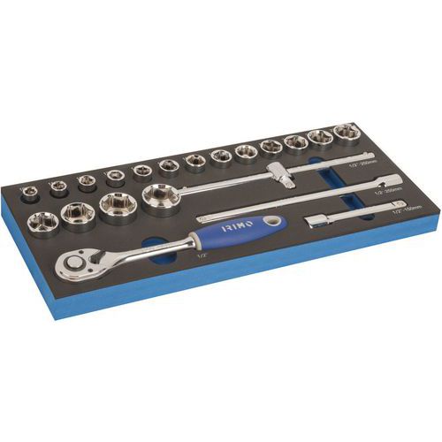 | Intitulé du produit | Mousse 1/3 Douilles 1/2 21 pièces, Nb de pièces: 21, Poids: 3.14 g, Hauteur hors tout: 34 mm |
