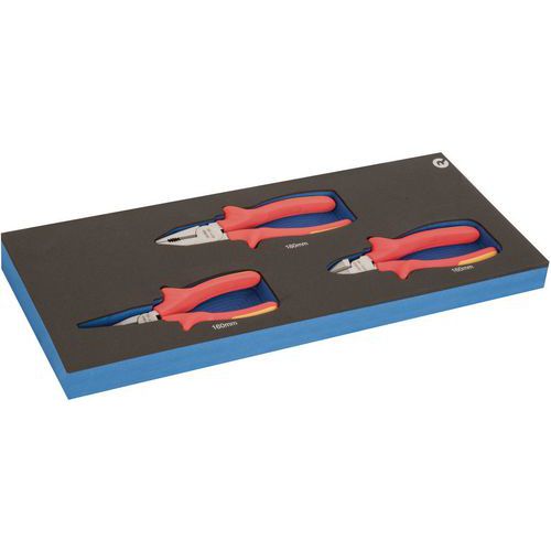 | Intitulé du produit | Mousse 1/3 Pinces isolées 3 pièces, Nb de pièces: 3, Poids: 0.71 g, Hauteur hors tout: 35 mm |