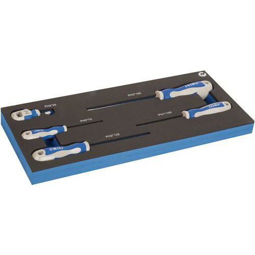 | Intitulé du produit | Mousse 1/3 Tournevis Phillips 5 pièces, Nb de pièces: 5, Poids du produit: 0.48 g, Hauteur hors tout: 35 mm |