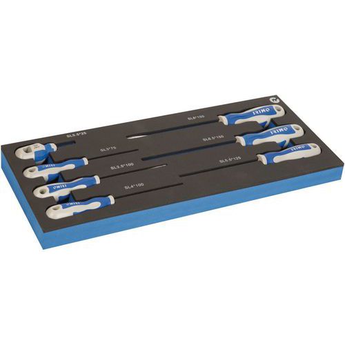 | Intitulé du produit | Mousse 1/3 Tournevis pour vis fente 7 pièces, Nb de pièces: 7, Poids du produit: 0.58 g |