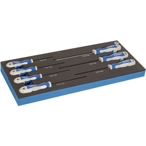 | Intitulé du produit | Mousse 1/3 Tournevis Torx 7 pièces, Nb de pièces: 7, Poids: 0.58 g, Hauteur hors tout: 40 mm |