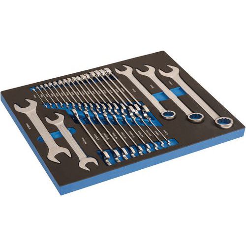 | Intitulé du produit | Mousse 3/3 Clés mixtes et clés à fourche doubles 31 pièces, Nb de pièces: 31, Poids du produit: 3 g |