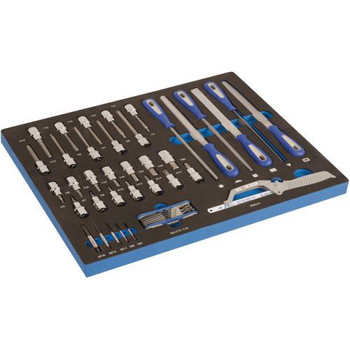 | Intitulé du produit | Mousse 3/3 Douilles tournevis limes et scie 44 pièces, Nb de pièces: 44, Poids du produit: 3 g |
