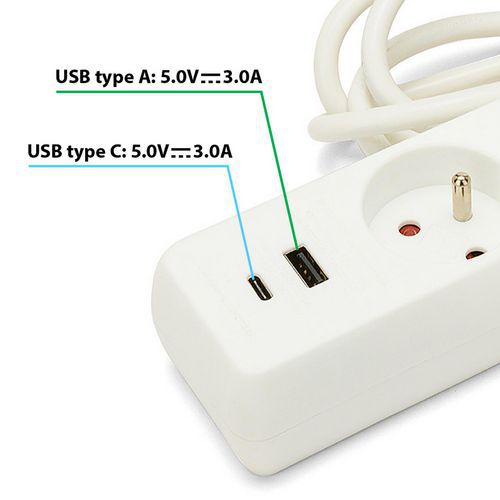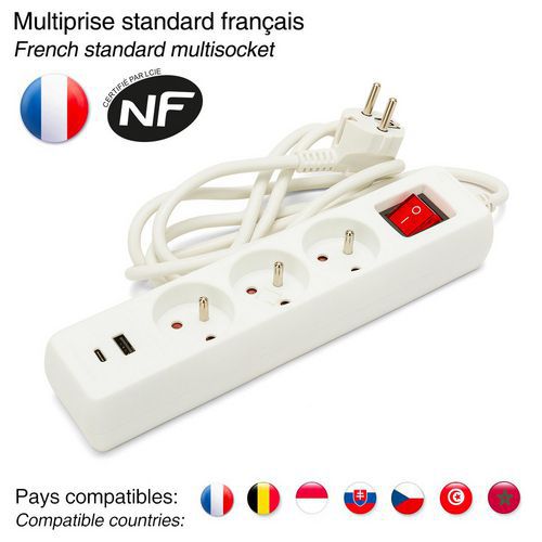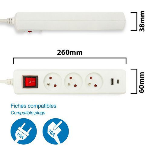 - Bloc multiprises 3 ou 5 prises avec port USB.