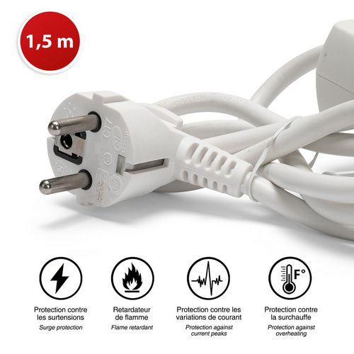 Multiprise NF avec interrupteur, Intensité: 2.1 A, Interrupteur: oui, Nb de prises: 3, Cordon longueur: 1.5 m