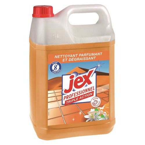 | Intitulé du produit | Nettoyant dégraissant triple action Jex Pro, Produit désinfectant: non, Pour type de sol: Multisurface |