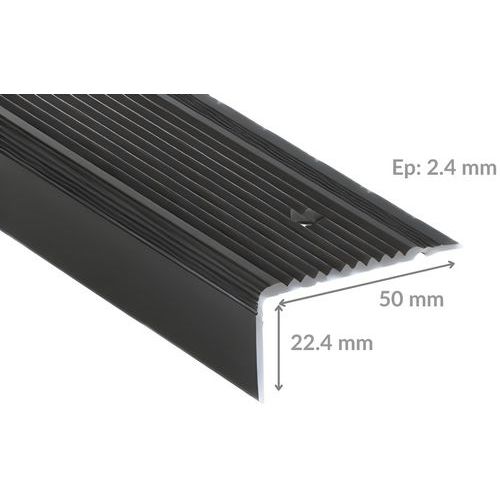 Nez de marche cornière rénovation, Coloris: Noir, Matériau: Aluminium, Longueur: 1500 mm, Largeur: 60 mm