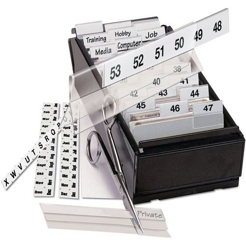 Fabriqués en polyester ultra résistant, ces onglets permanents présentés en bandes sont munis de bristols de différentes couleurs à libeller à la main ou à la machine avant leur insertion.